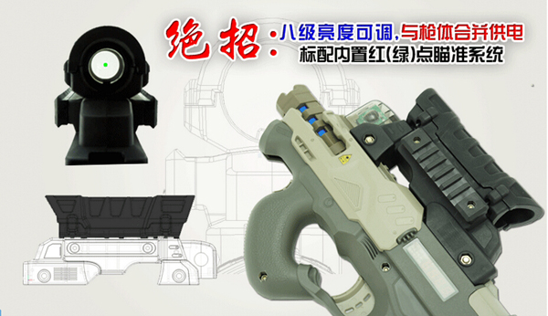 東莞真人CS野戰(zhàn)最新裝備DK3000"精靈"野戰(zhàn)裝備激光發(fā)射器, 裝備有可調(diào)節(jié)8級亮度的內(nèi)紅(綠)點式瞄準系統(tǒng)。真正做到了“只要內(nèi)紅(綠)點瞄到哪、就能打到哪”。新人甚至不需要太多的培訓也可以成為神槍手!一切就是這么樣的簡單。此項配置不僅徹底解決了新手玩家不會瞄準的難題,更大大提高了新玩家的成就感、參與熱情。