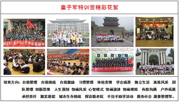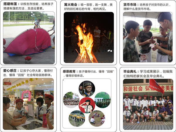 活動(dòng)形式:童軍特訓(xùn)營以學(xué)生的成長過程為主線,以過去——現(xiàn)在——未來為導(dǎo)線展開培訓(xùn)。通過了解過去的我是一個(gè)什么樣的,在過去我形成了一些什么特質(zhì),有哪些優(yōu)點(diǎn),有哪些需要提升的地方,有哪些限制自己成長的鐵鏈,接納自己的過去,有利于自己的全面成長。然后現(xiàn)在讓孩子成為一個(gè)個(gè)性鮮明、充滿自信、敢于負(fù)責(zé),具有思想力、領(lǐng)導(dǎo)力、創(chuàng)造力的現(xiàn)代學(xué)生,提升孩子的交際溝通能力,為自己將來設(shè)定切實(shí)可行的目標(biāo)及方向。